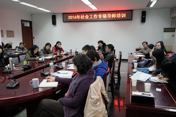 2016年11月29日,由研究生处、MSW教育中心组织,邀请我校副院长刘梦为全体社会工作专业硕士生导师开展了2016年新导师聘任后的第一次导师培训。社会工作学院、法学院及儿童发展与教育学院三个培养院系现任及新聘导师参加了本次活动。