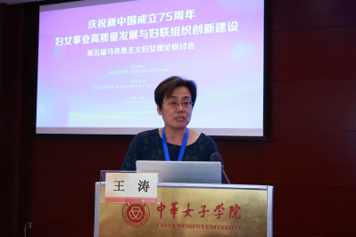 中华女子学院(全国妇联干部培训学院)妇女发展学院(新时代中国特色社会主义妇女理论研究院)于6月20日至21日在学院文体楼多功能厅举办第五届马克思主义妇女理论研讨会。来自中共中央党校、北京大学、中国人民大学、全国妇联妇女研究所、中国农业大学、中国社会科学院大学、北京市社会科学院、西安交通大学、山西师范大学、对外经济贸易大学、厦门大学、济南大学、青岛大学、江苏大学、河北经贸大学、黑龙江省妇女研究所、浙江经济职业技术学院等70余人参与研讨会。近40位专家学者围绕“庆祝新中国成立75周年:妇女事业高质量发展与妇联组织创新建设”主题进行主旨发言和论坛研讨。