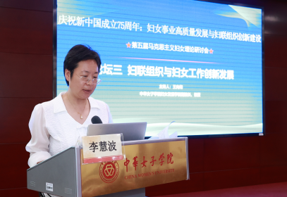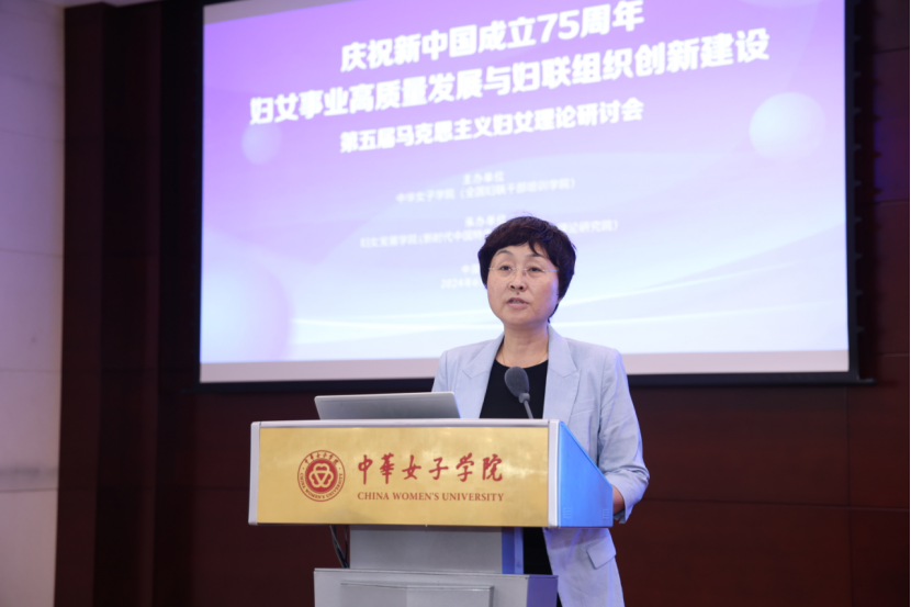 中华女子学院(全国妇联干部培训学院)党委书记刘亚玫出席会议并致开幕词。她指出,今年是中华人民共和国成立75周年,也是全国妇联成立75周年,我们在此召开研讨会,进一步深入学习习近平总书记关于妇女儿童和妇联工作重要论述,聚焦马克思主义妇女理论中国化时代化、妇女事业高质量发展、妇联组织创新建设三个议题,梳理总结75年来妇女事业高质量发展和妇联组织创新建设的历史进程与基本经验,推动马克思主义妇女理论中国化时代化创新研究,很有意义。刘亚玫强调,开辟马克思主义中国化时代化新境界既是中国共产党人的庄严历史责任,也是理论界应该担起的重大课题。习近平总书记关于妇女儿童和妇联工作的重要论述是习近平新时代中国特色社会主义思想的重要组成部分,对丰富马克思主义妇女理论作出了原创性贡献,开辟了马克思主义妇女理论中国化时代化的新境界,是推动新时代妇女事业高质量发展的科学指南,我们要学习好、坚持好、运用好。要坚守马克思主义这个魂脉、坚守中华优秀传统文化这个根脉,把马克思主义思想精髓同中华优秀传统文化精华贯通起来,把握好“六个必须坚持”等推进党的理论创新的科学方法,进一步深化对妇女事业、妇女发展、妇联工作的规律性认识,在强国建设、民族复兴的火热实践中展现当代马克思主义妇女理论中国化时代化强大的真理力量。