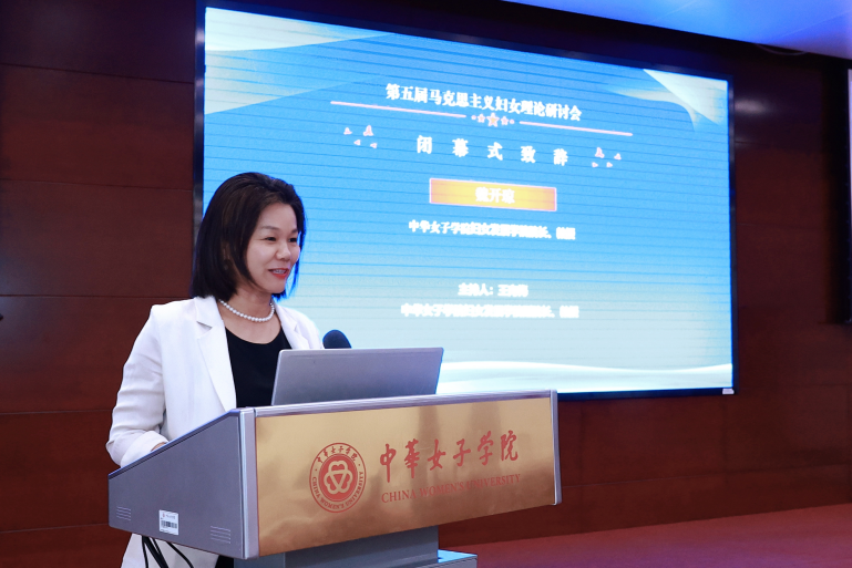 会议闭幕式上,中华女子学院妇女发展学院院长魏开琼教授进行大会总结。她用“传承”、“支持”和“成长”三个词总结了本次会议特色,感谢一代一代马克思主义妇女理论研究前辈引领青年学者向着理论研究的纵深迈进,并对马克思主义妇女理论研究的未来进行展望,认为马克思主义妇女理论研究要坚定学科自信,要坚持问题导向,要坚守交流平台。最后,她再次对与会专家学者的参与和贡献表示感谢,期待明年能够有更多专家学者汇聚中华女子学院,期待马克思主义妇女理论的体系化学理化取得更丰硕成果。