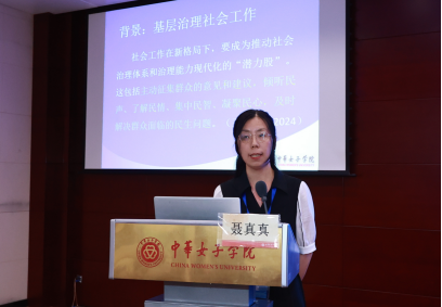 在“妇联组织与妇女工作创新发展”论坛中,中华女子学院社会工作学院陈伟杰副教授、黑龙江省妇女研究所王茜助理研究员、中华女子学院妇女发展学院刘子一讲师、河北经贸大学马克思主义学院尼莎讲师、中华女子学院妇女发展学院李慧波讲师分别作了主题报告。中华女子学院妇女发展学院副院长王向梅教授主持了该主题论坛。中华女子学院韩贺南教授与中华女子学院马克思主义学院王涛教授参与该论坛的与谈环节。