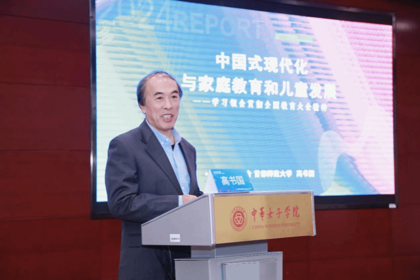 中国教育学会副秘书长、首都师范大学特聘教授高书国在主旨报告《中国式现代化与家庭教育和儿童发展》中指出,家庭教育应深入贯彻全国教育大会精神,家庭教育哲学要聚焦血亲为基础、母亲为纽带、生活教育为核心和社会性发展为目标四个核心要素。