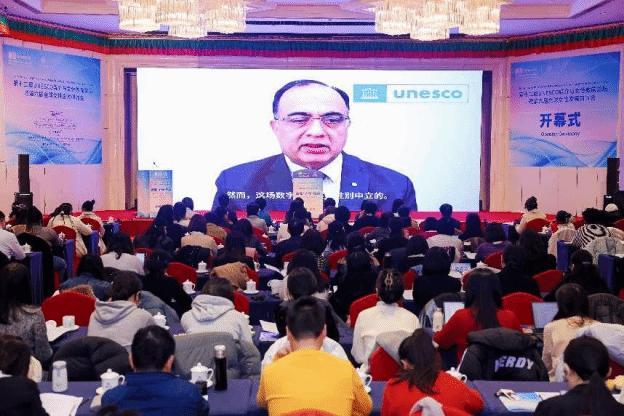 联合国教科文组织东亚地区办事处主任兼代表夏泽翰(Shahbaz Khan)在视频致辞中感谢全国妇联和中华女子学院举办这场盛会。他表示,教席成立19年来在研究、教育和外联方面取得了里程碑式的成就,是联合国教科文组织在媒介领域实现性别平等承诺的重要典范,本次论坛主题与联合国教科文组织致力于在数字时代促进性别平等和赋能女性的目标深深共鸣。
