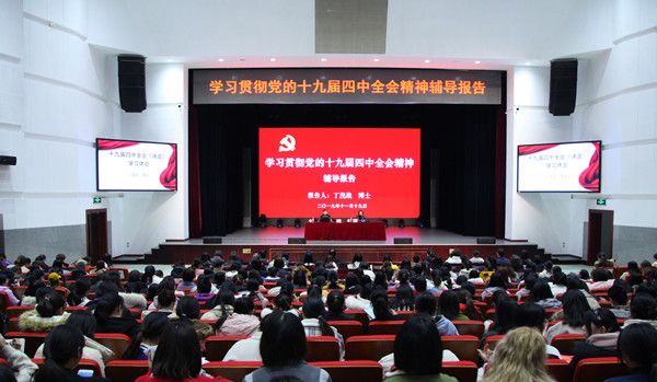 为加强学习贯彻党的十九届四中全会精神,更加深入扎实地推进“不忘初心、牢记使命”主题教育,11月19日下午,学校在礼堂举行学习贯彻党的十九届四中全会精神辅导报告会。中央党校(国家行政学院)报刊社总编辑丁茂战...