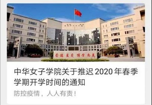 为做好新冠病毒疫情防控工作,保障师生生命安全和身心健康,按照全国妇联、教育部和北京市的统一部署,学校疫情防控领导小组决定推迟2020春季学期返校时间,发布《致中华女子学院全体师生的一封信》,对疫情期间的教...