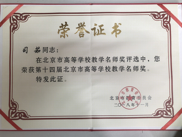 根据北京市教委《关于开展第十四届北京市高等学校教学名师奖暨第二届北京市高等学校青年教学名师奖评选工作的通知》(京教函〔2018〕273号),经我校推荐和北京市教委评审,我校司茹教授获第十四届北京市高等学校教学...