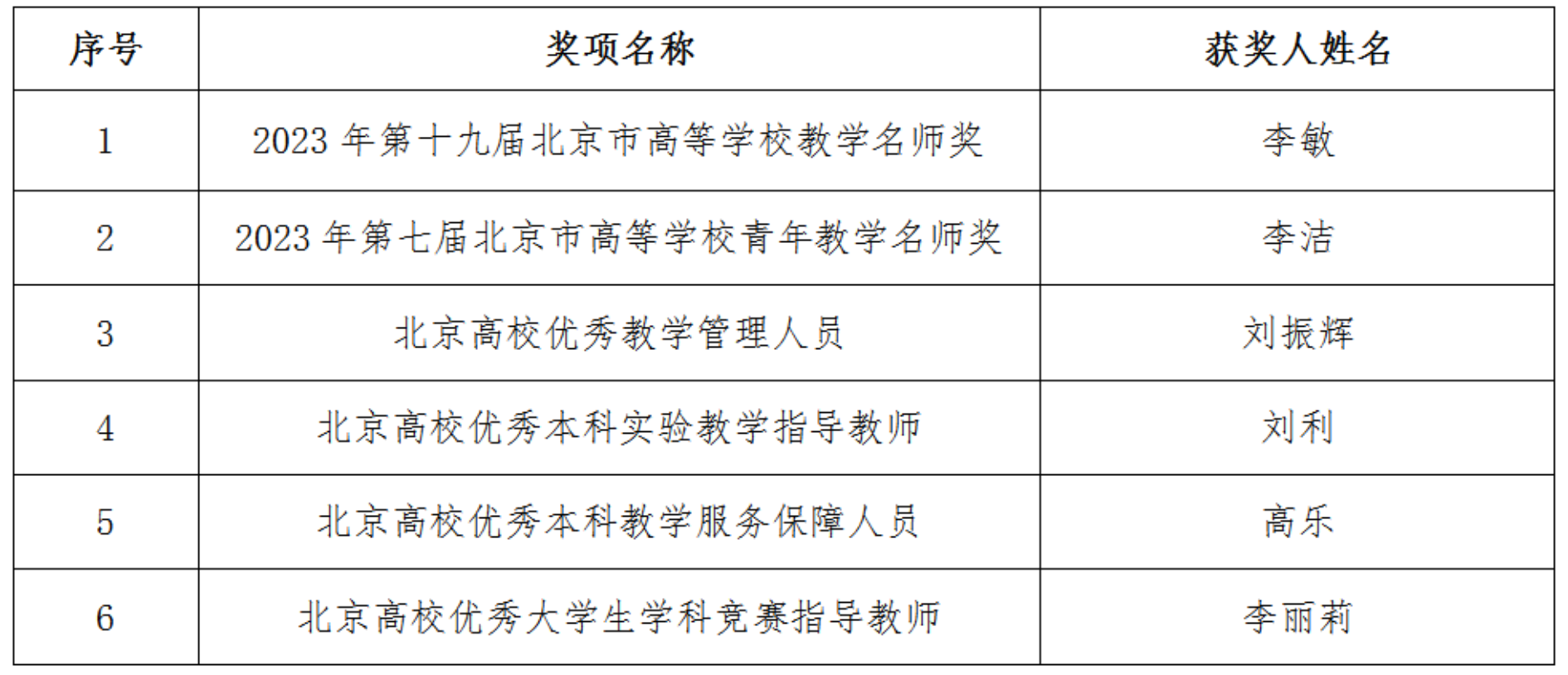 近日,北京市教育委员会公布了2023年北京高校本科教学项目建设评选结果,我校共荣获各类本科高层次教育教学类成果18项,实现了量质齐升。 获奖详情如下: 北京高等教育本科教学改革创新项目 北京高校“优质本科课程...
